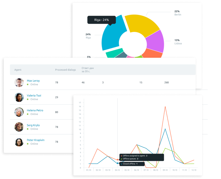Make your support chat even more powerful with integrations for popular social networks, messengers, and mobile app chats, including WhatsApp Business API and Apple Business Chat.
